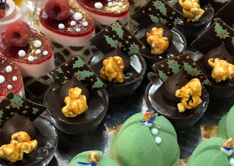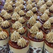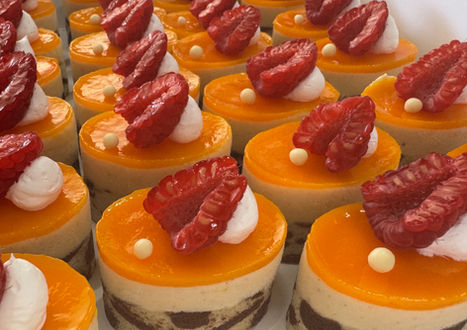 Mixed mini dessert slices, tarts and cups, ideal for buffets and cocktails.